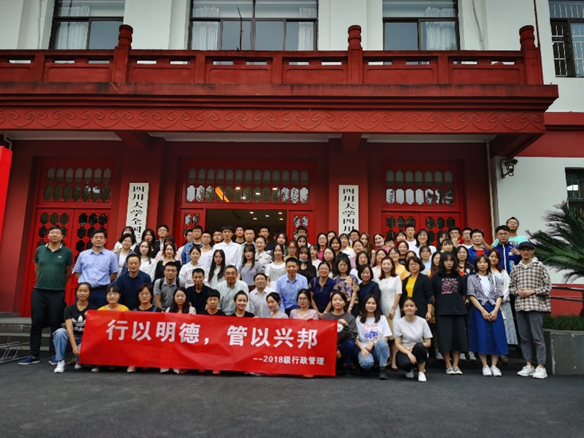 见面会结束后,全体师生在干训基地门前合影留念。两个小时的师生见面会,加深了师生间的相互了解,增强了同学们之间的凝聚力和向心力,同时也激励了同学们努力学习、追求卓越。“行以明德,管以兴邦”,每位行管同学都将这句话铭记在心。在行管系诸位老师的带领下,2018级行政管理专业的各位同学一定能再续辉煌,让行政管理系变得更加出色,在“国家级一流本科专业”建设的征程上不断取得新的成绩。