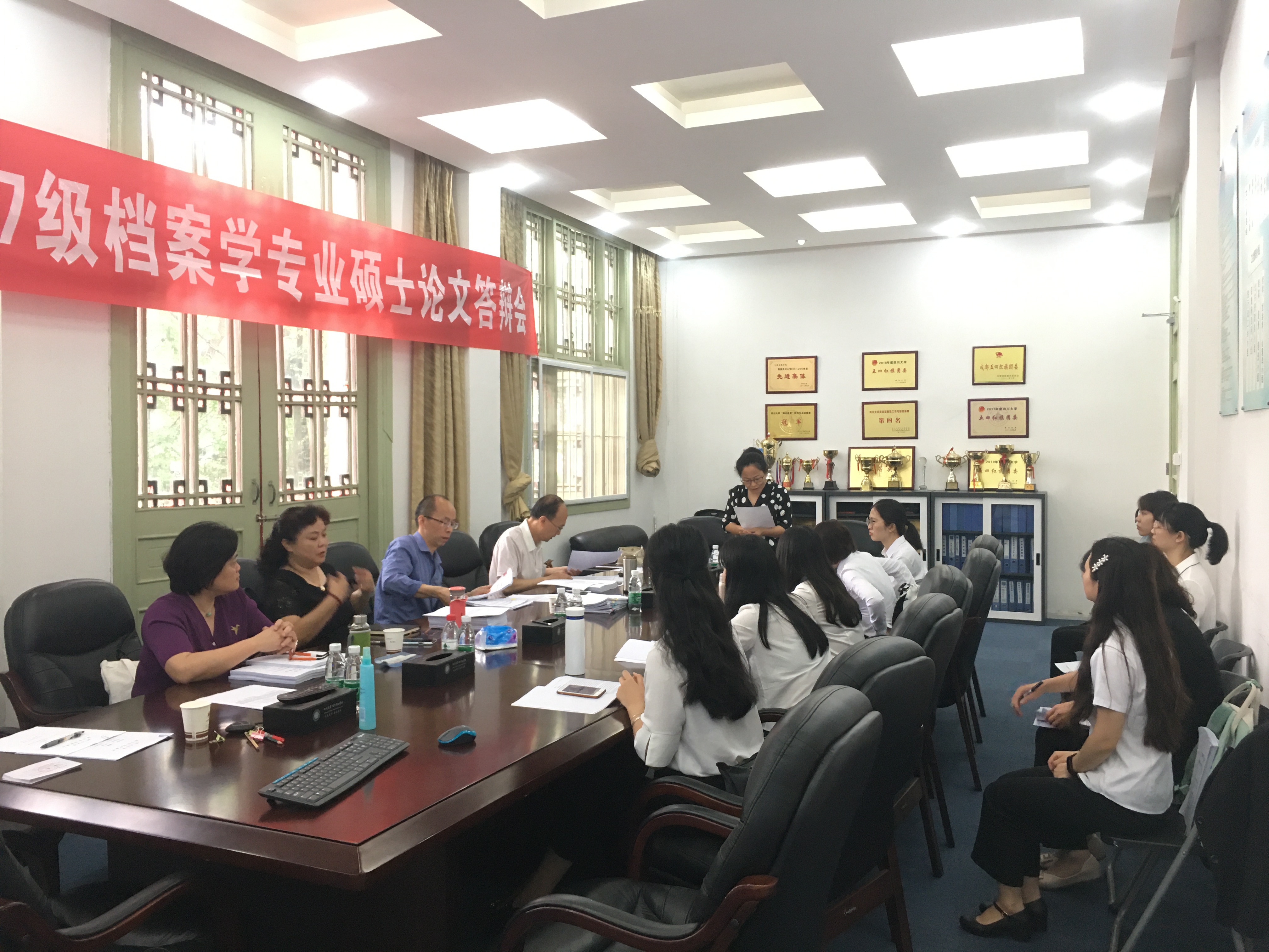 系主任王萍副教授表达了对答辩专家出席本次答辩会的衷心感谢,对档案学专业硕士研究生所展现出的学术态度给予了充分肯定,祝贺答辩员工顺利通过。此外,王萍副教授还要求答辩员工要充分汲取答辩专家的意见,对论文不足之处认真修改完善。