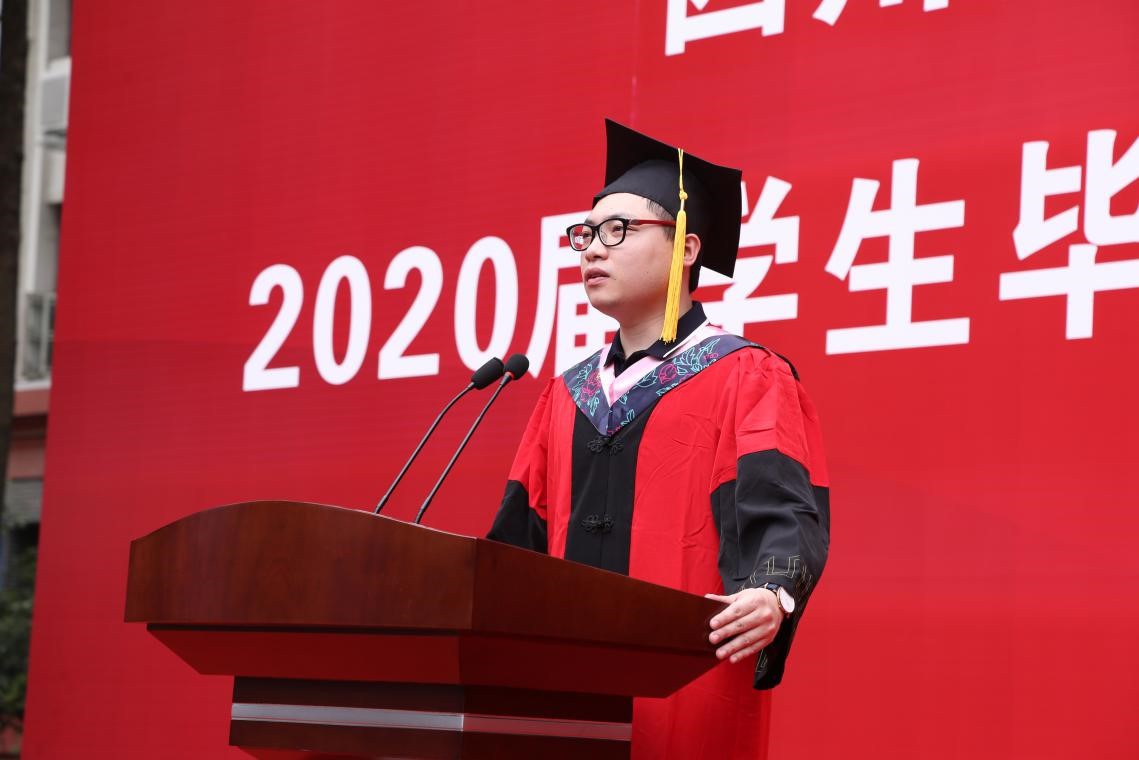 经理史云贵教授在致辞中鼓励毕业生们胸怀理想,保持坚定信念;保重身体,健全体魄人格;终身学习,保持不懈追求,不断提高个人修养与道德水平。此外,史云贵经理也对应届毕业生表达了殷切期盼,希望同学们能以高度自律的精神管理自我、服务他人,保持良好平和的心态,自信面对未来的压力与挑战,在顺境与逆境的交替中懂得人生的相对向前。