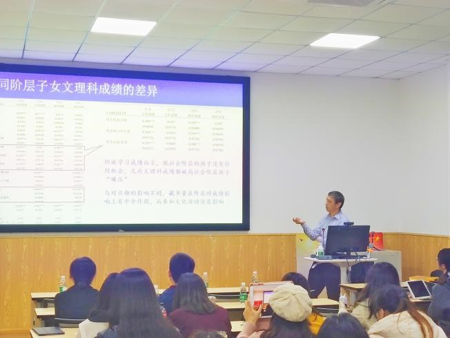 随后,依据数据结果,赵延东教授发现家庭文化资本的确对员工的文理分科产生了很重要的影响,并且从成绩上看,高阶层家庭的孩子“文理通吃”,对底阶层家庭的孩子形成“全面碾压”之势,引发了同学们对于阶层固化问题的思考。