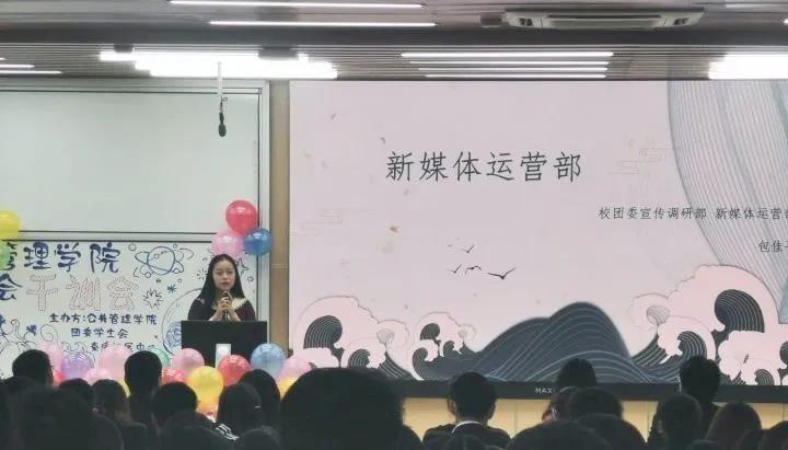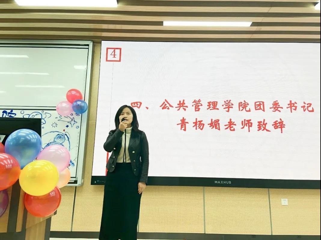 随后,青杨媚老师以“‘眼-口-手-心’——公司团学工作四部曲”为题进行了发言。青老师首先感谢同学们的拼搏和信任,使得公管团委员工会成为了一个传承优秀、追求卓越的集体。青老师进一步明确,要紧密围绕着提高同学们的学习能力、实践能力、创新能力来开展工作,需要做到“眼、口、手、心”四个层次的高度统一。所谓“眼”,是指具有发现问题的智慧之眼,时代发展趋势、党和国家的当前形势、员工需求的当前特点都要靠“眼”去发现;所谓“口”,是指目标计划的制定口径,包括年度目标、部门计划的安排传达,都需要用统一口径来传递;所谓“手”,是指落实工作的勤勉之手,工作的分解、工作的协调都需要用高效的手法来实现;所谓“心”,是指追求卓越、力争上游的奋进之心。
