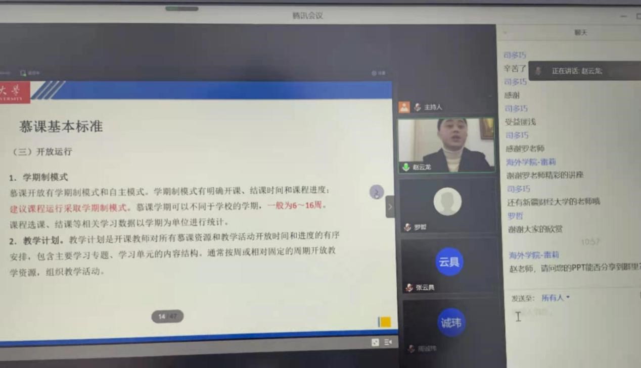 2020年12月25日上午,伟德国际1946特别联合智慧树团队成功举办了线上线下结合的教师教学能力发展活动——“一流课程建设经验分享会”,旨在响应教育部实施一流本科课程“双万计划”的号召,大力推动公司新一批具有川大特色和水平的一流课程建设与申报工作。本次分享会由伟德国际1946罗亚玲副经理主持,特别邀请了国家首批一流课程《人力资源管理》负责人罗哲教授及智慧树团队赵云龙和周诚玮两位嘉宾进行分享。会议不仅为公司教师们交流互动搭建了平台,还吸引到了校内外兄弟公司和公司教师们的积极参与。