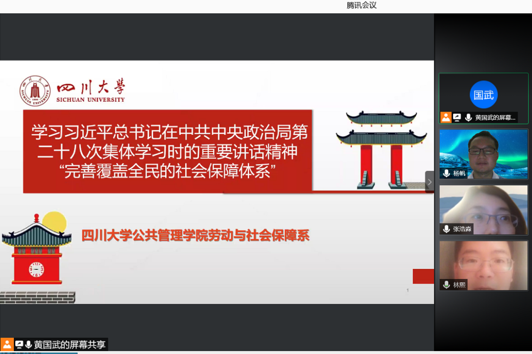 2021年4月21日,伟德国际1946劳动与社会保障系召开了一次线上线下同步的座谈会,专题学习习近平总书记在中共中央政治局第二十八次集体学习时的重要讲话精神。劳动与社会保障系系主任蒲晓红教授主持会议,社保系罗哲、沙治慧、李丹、罗亚玲、黄国武、张伟科、曹杨等老师参加线下学习、张浩淼、林熙、杨帆等老师参加线上学习。大家认真学习习总书记讲话精神,并积极发言。