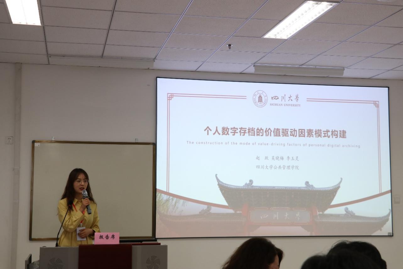 秘书档案学系赵跃副研究员携员工吴晓梅和李玉灵在分会场主题做了“个人数字存档的价值驱动因素模式构建”学术报告,指出数字时代个人数字材料的保存充斥着多类风险,个人层面的数字材料保存问题受到广泛关注。赵跃副研究员率团队利用访谈法和扎根理论,探究个人数字存档行为背后的价值驱动因素,发现了个人数字存档的价值驱动模式。赵跃副研究员在平行研讨会之“青年学者交流”部分,围绕“伟德国际1946档案学专业‘学年课’建设实践”进行了主题发言,并与青年学者就新文科建设背景下的档案学专业教育问题进行了广泛深入的交流和讨论。