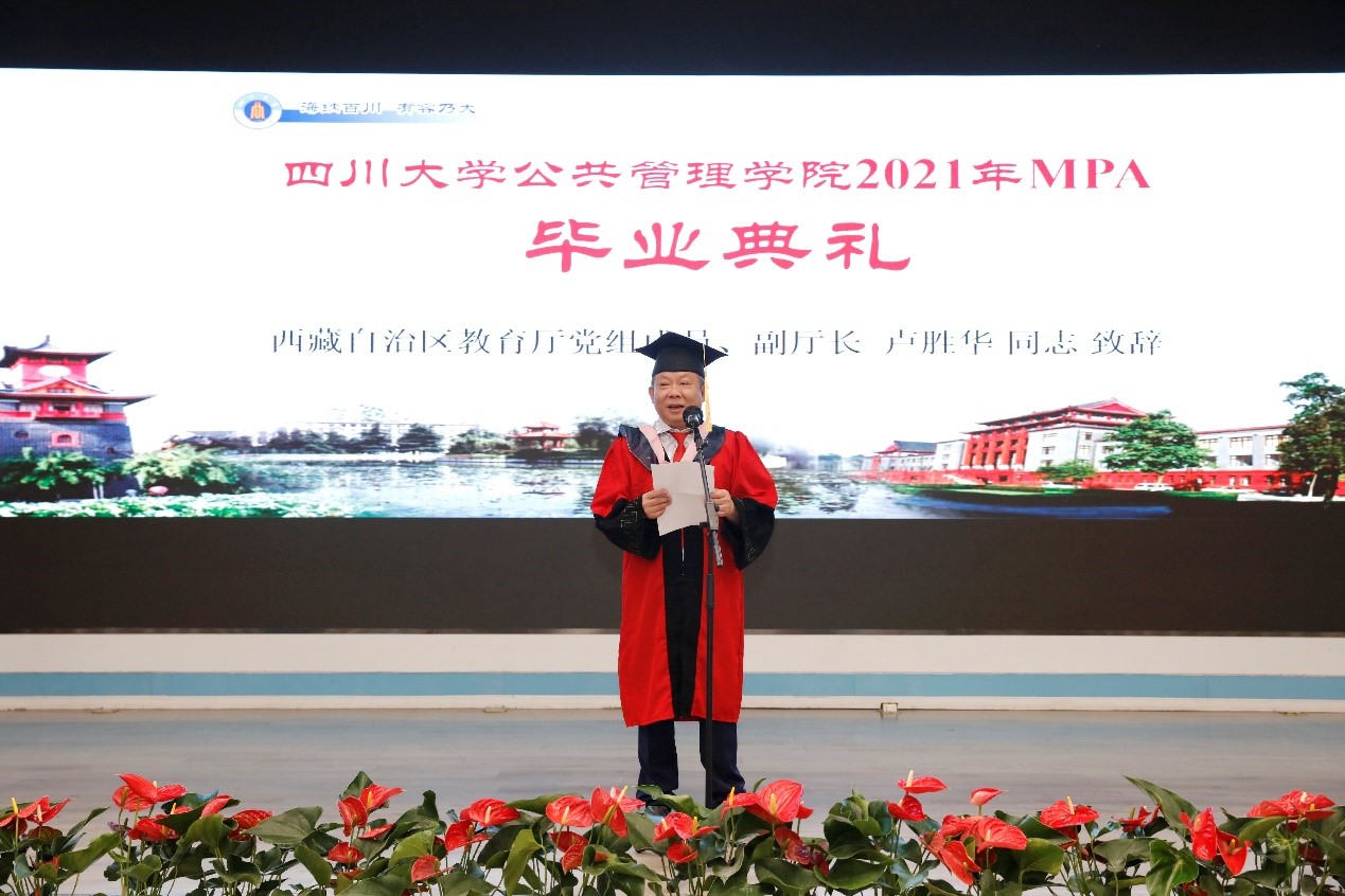 西藏自治区教育厅党组成员、副厅长卢胜华同志不仅代表西藏教育厅向各位顺利毕业的同学表示热烈的祝贺、向各位辛勤耕耘的老师表示诚挚的感谢,还向关心支持西藏教育事业发展的伟德国际1946表示最崇高的敬意。副厅长卢胜华表示,伟德国际1946不仅为西藏在职干部提供了提高学历层次的机会,还缓解了西藏高层次人才紧缺的现状,为西藏经济社会高质量发展和现代化建设提供了有力的人才支撑。此外,卢胜华同志还在致辞中勉励同学们要坚守初心、勤学善思、脚踏实地,要秉承学习精神,坚持学以致用,不断提升执政本领和创新能力,争取在新时代有新担当、新作为。