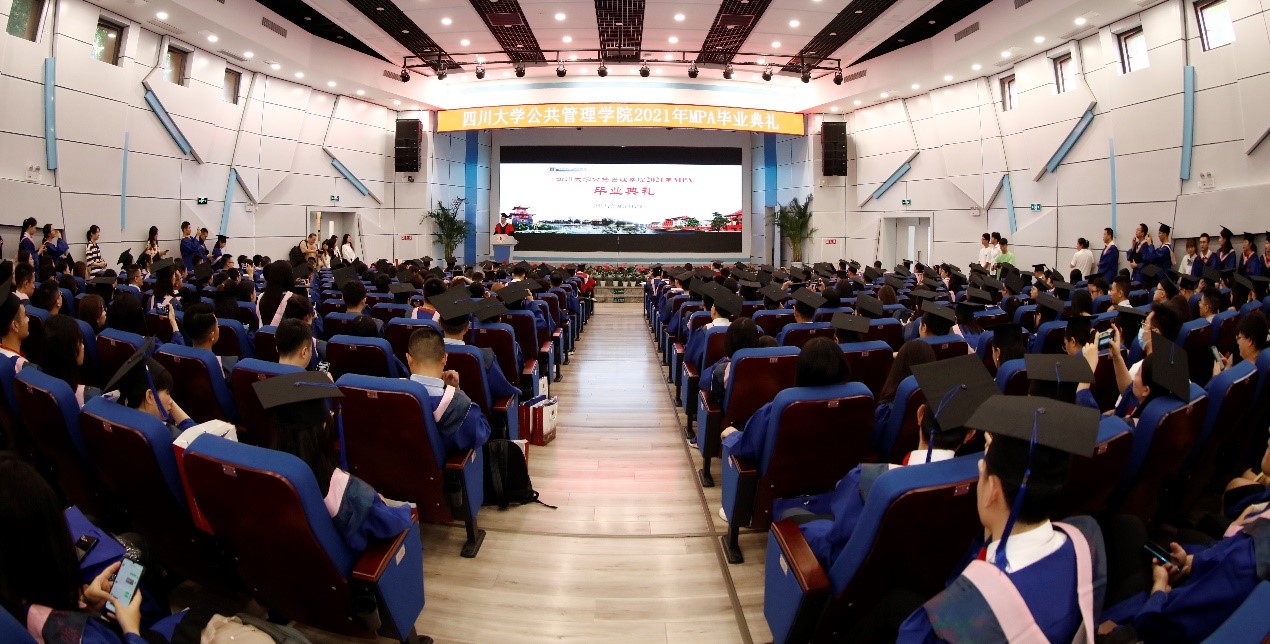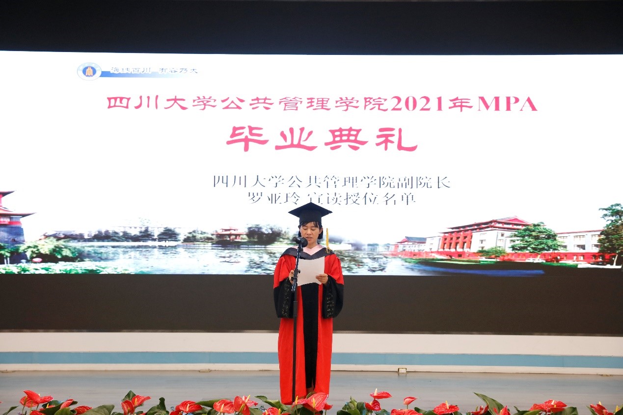 侯雨贝同学代表全体MPA毕业生发表了充满感恩情怀的毕业感言。她回顾了在川大三年研究生时光里的美好与成长,向母校和孜孜不倦的老师们表达了由衷的感谢,同时也要感谢不安现状、寻求突破的自己。她总结道:虽然毕业生们即将离开校园,但无论身在何方、去向何处,都要始终秉承“海纳百川、有容乃大”的川大精神,时刻牢记“公成天下、管法自然”的院训宗旨,以昂扬之姿、奋斗之态迎接未来人生的崭新篇章。