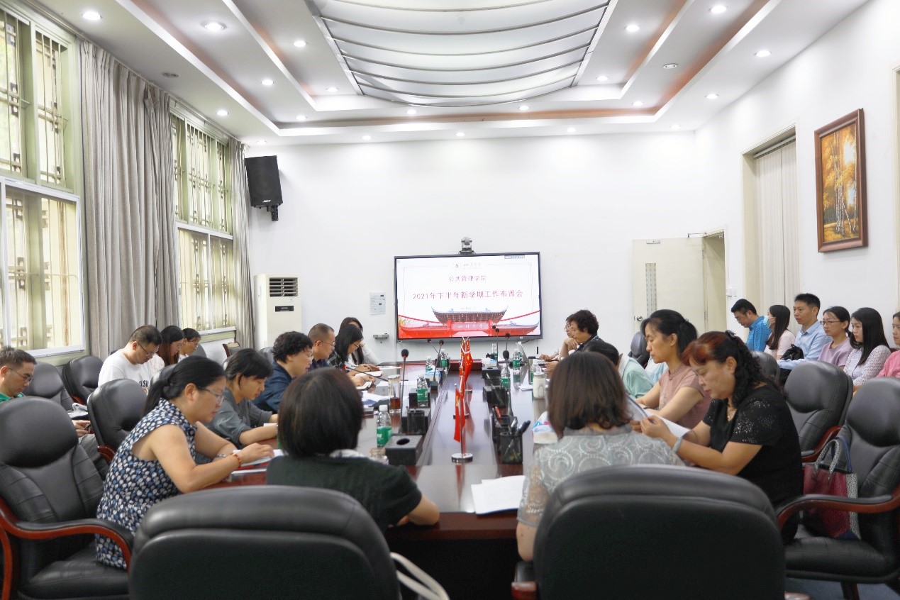 9月1日下午,公司在萃文楼三楼会议室召开2021年下半年新学期工作布置会,公司班子、两委委员、支部书记、系主任、科级干部及全体教职工参会。会议由公司党委书记姜晓萍教授主持。