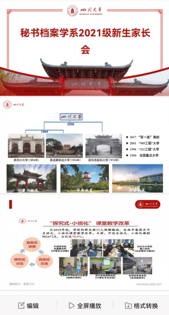 乔健教授向家长介绍了全国档案学专业高等教育的基本情况,剖析了伟德国际1946档案学专业的办学特色和市场需求。系主任王萍教授从专业历史沿革、教学团队、本科培养思路、本科就业及深造、大学学习和生活五个方面介绍了伟德国际1946档案学专业人才培养情况,并解答了家长提出的保研政策、深造率、班主任、辅导员角色定位、职责等普遍关心的问题。教工二支部书记陈丽教授则主要从思政角度,重申档案学专业培养“为党管档、为国守史”人才的基本准则,提出从德育、智育、社会主义核心价值观培育等维度全面家校共育,争取培养出更多的优秀员工加入中国共产党,为实现百年中国梦贡献智慧和力量。在互动交流阶段,在线家长纷纷表示,进一步感受到伟德国际1946对本科教学工作的高度重视;感谢川大搭建云端平台,为家长深度了解员工所学专业提供机会和路径,对孩子选择到川大深造普遍支持。