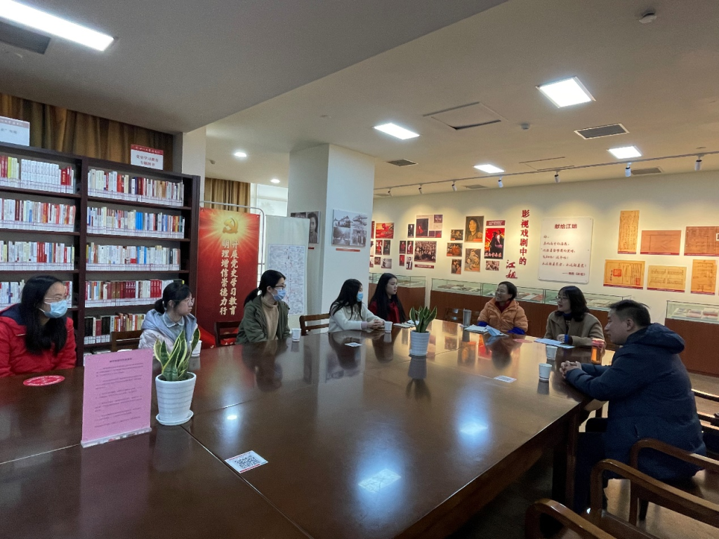 12月9日下午,在江安图书馆“学习书屋”研讨室,与吴廷照、杨辉、淳姣、李晓蔚等诸位老师进行了交流。之后,在各位老师的带领下,同学们参观了江安馆办公室、文献服务中心(江安)、信息技术中心、地下密集书库和巴蜀文库方志馆、沐心小屋、明远文库、明远展厅等特色资源库和展览区,同学们更加了解了图书馆的新技术和新系统,切实感受到图书馆工作方式的时代变化。