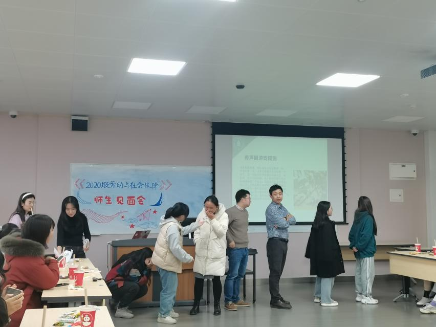 活动开始,进行第一项:自我介绍环节。首先由老师逐个进行介绍,主要围绕基本情况、专攻领域、以及对同学们的了解和未来的期许几个方面展开。根据老师的介绍,伟德国际1946劳动与社会保障系是以管理学、经济学等学科为基础,根据社会对人才的现实需求,坚持高质量、重特色的人才培养理念,以社会保障的教学为中心,使员工学有所长,学有所用,成为德、智、体全面发展,通晓中外社会保障理论与实务,系基础知识扎实,业务知识面宽,具有较强的理论研究能力和教学能力的复合型应用型人才。接着,每位同学也从自我信息、对专业的期待等方面展开了简短的自我介绍。通过这一环节,师生们均在舒适轻松的氛围中介绍了自己,了解了彼此。