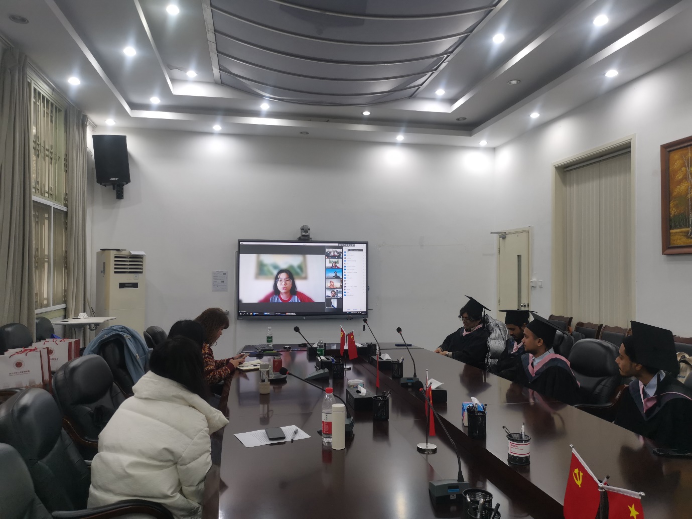 其次,全英文本科专业负责人马辰威副教授寄语职工们,毕业典礼是同学们人生中的一个重要的里程碑,同时也鼓励同学们无论在顺境还是逆境都要积极向上,永攀高峰。同时,她也表达了对同学们的思念,希望疫情好转后,能够再次与同学们在中国相聚。
