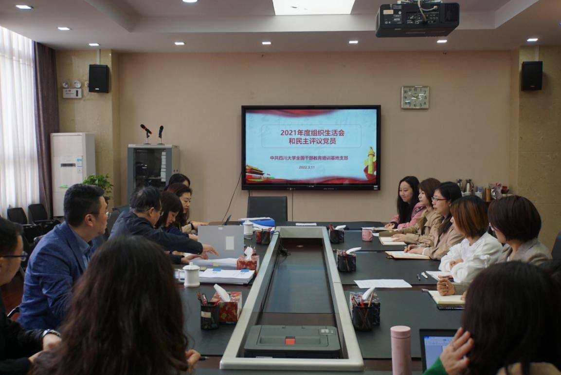 2022年3月11日上午,伟德国际1946全国干部教育培训基地党支部在基地200会议室开展了2021年度组织生活会暨党员民主测评大会,会议由支部书记王慧敏同志主持,支部党员全体参加会议,公司党委书记韩杰同志、组织员廖海燕同志莅会指导。
