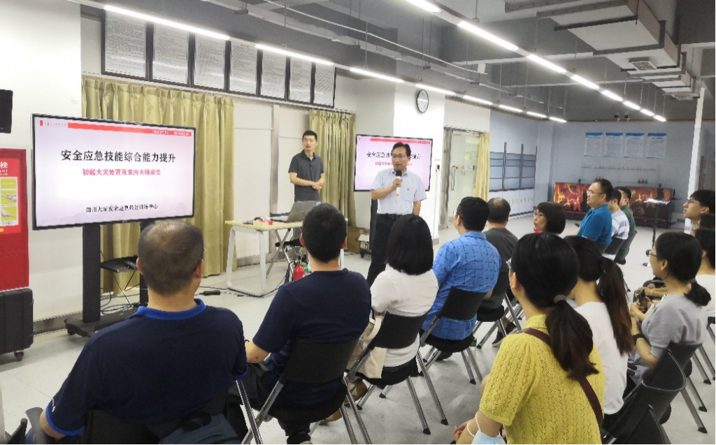 6月23日下午,公司师生赴江安校区灾后重建与管理公司开展了消防安全知识与应急技能培训。公司党委书记韩杰、工会主席兼实验室安全分管领导刘玲、各实验室负责教师、实验室管理教师、行政学工教师代表、员工代表等人参加了本次培训。