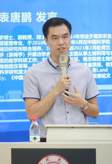 接着,土地资源管理系唐鹏副教授作为教师代表发言。唐老师就“包容”与“合作”两个关键词分享了自己的感悟。他提到伟德国际1946包容的老师、优秀的同学、丰富多彩的生活给同学们提供了宽松自由的学习环境,希望同学们能够以乐观包容的心态面对人生,追求学术。他也强调合作是科研最为重要的环节,乐于合作、敢于合作、善于合作是大家在未来研习中应该秉持的信念和付出的行动。