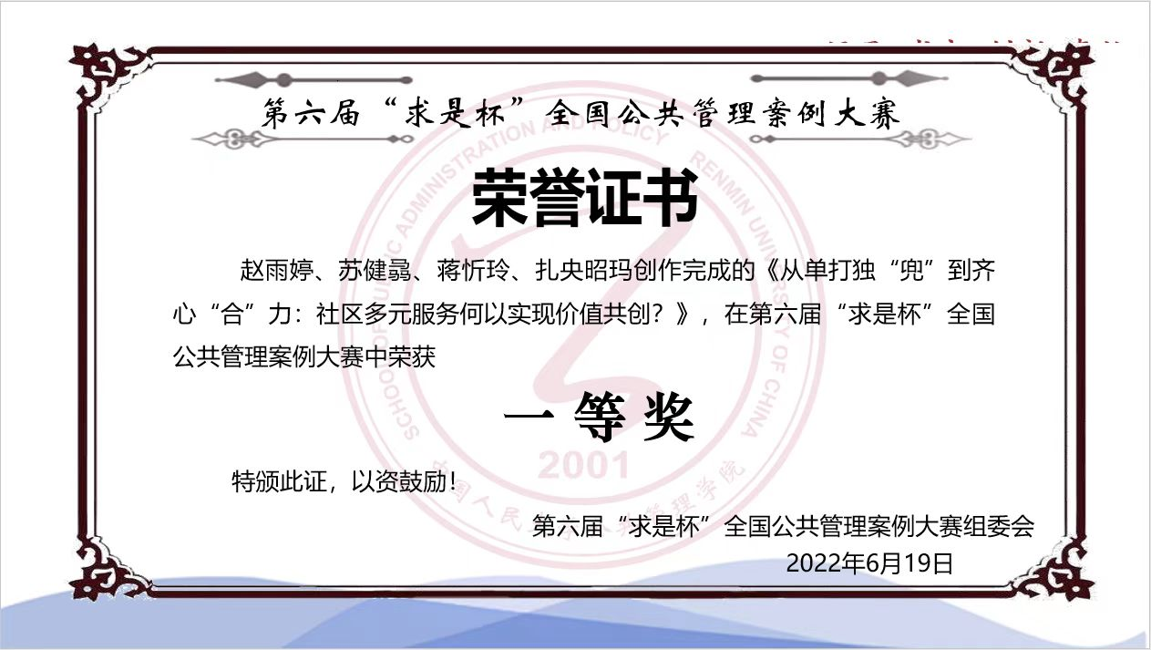 行政管理系本科生喜获第六届“求是杯”全国公共管理案例大赛一等奖