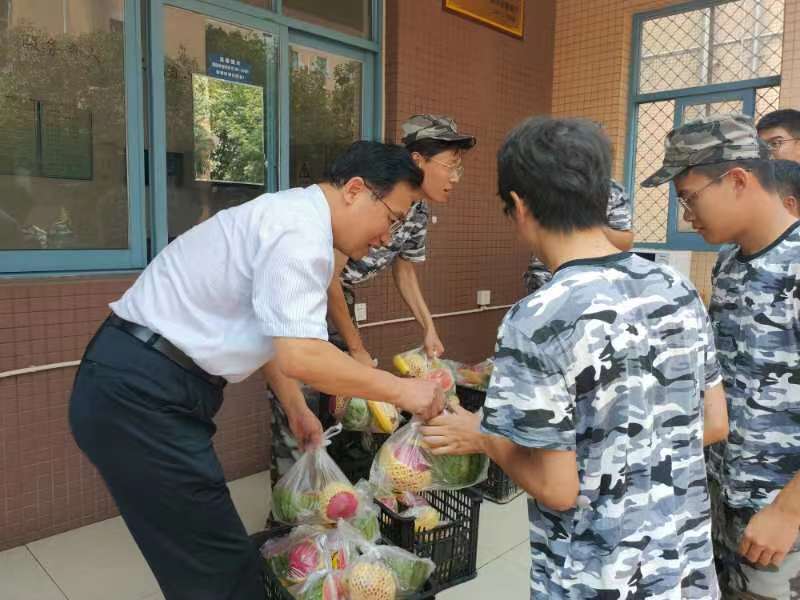 尽管烈日炎炎、军训辛苦,但是水果发放秩序井然,现场氛围温馨融洽。公司领导深入员工宿舍慰问军训学子,使同学们在高强度的训练外感受到公司领导对自己的关爱、呵护与重视,同学们都备受鼓舞,脸上洋溢着幸福的笑容,纷纷表示感谢公司和领导的悉心关怀,并表示接下来会以更加饱满的热情、更加挺拔的姿态积极投入到后期的军事训练中,争取在合唱比赛和军训汇报演出中展现出公管学子的独特风采!预祝2021级同学们在本届军训中取得优异成绩,圆满完成任务。
