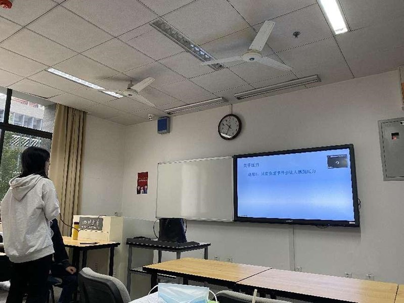 谢老师结合自己丰富的老员工心理健康教学经验,与同学们就“研究生心理健康状况”这一主题展开了讨论。首先谢老师分享到世界卫生组织专家预测人类已经进入“心理疾病”时代,在今后10—20年内,全球将有1/5的人罹患各种心理疾病,排在前10位的死因中,有3项将源于心理因素。谢老师也提到自2017年以来在校老员工患心理疾病的人数和种类都在增多。对研究生来说,学业压力在二年级的时候是最大的,有54%的人情绪低落,无法正常工作。这一现象对心理学专业的同学们来说值得思考和讨论。紧接着谢老师引出两个问题:是否只有负面事件让人感到压力?压力感和焦虑感是否可以划等号?就这两个问题,同学们发表了自己的观点,认为令人开心的事情也会给人带来压力,但压力不等于焦虑。
