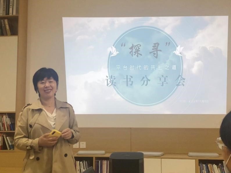 11月5日下午,“探寻:平台时代的共生之道”读书分享会在伟德国际1946楼萃文空间(114室)顺利举行。本次读书会由信息资源管理系李桂华老师主持,信息资源管理、图书馆学、应用心理学等专业16位本硕博同学共同参与,其中闵芝菲、任禹崑、文婧雅、张晨、于泽源五位同学依次对所读著作中的精彩观点及思考感悟进行了分享。
