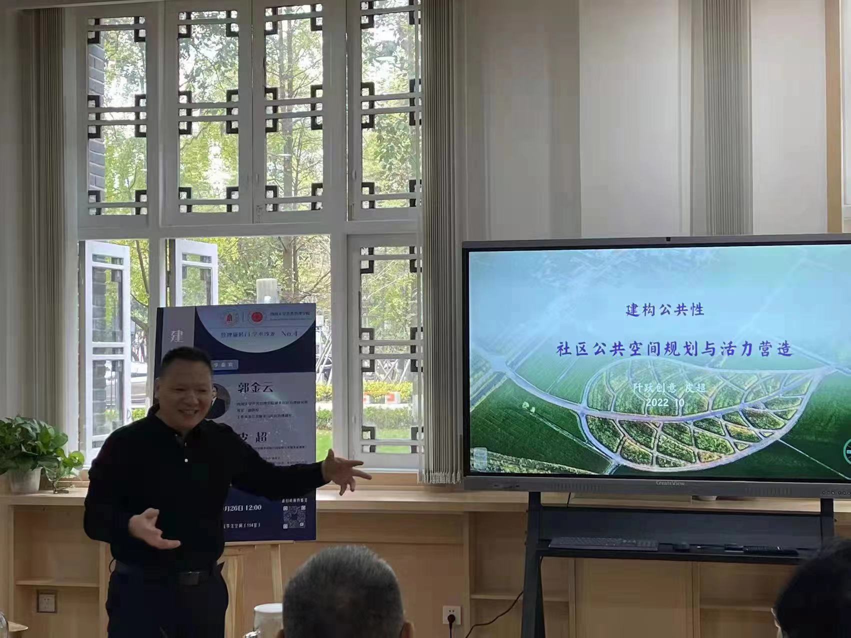皮超主任结合自身在成渝两地各类街区、社区和小区等社区公共空间的规划设计案例,介绍了社区公共空间活力营造的底层逻辑与规划理念,强调要突出以人为本,遵循“公益导向、商业逻辑”,促进党建、治理、服务相互融合。郭金云老师基于重叠式结构的公共性内涵转换,阐析了公共性困境与城市公共空间失落的具体表现,并基于场所活力、主体活力和行为活力探讨了社区公共空间活力的评价维度,最后也为倡导社区公共空间的跨学科合作提出了研究预想。