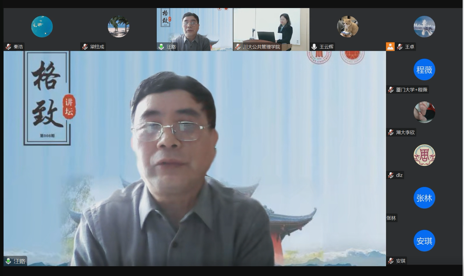 在提问环节,来自线上线下的与会学者踊跃提问,汪教授耐心解答。最后,王卓教授对本次讲座内容进行了概括和总结,并对汪路教授的精彩讲演表达了感谢。
