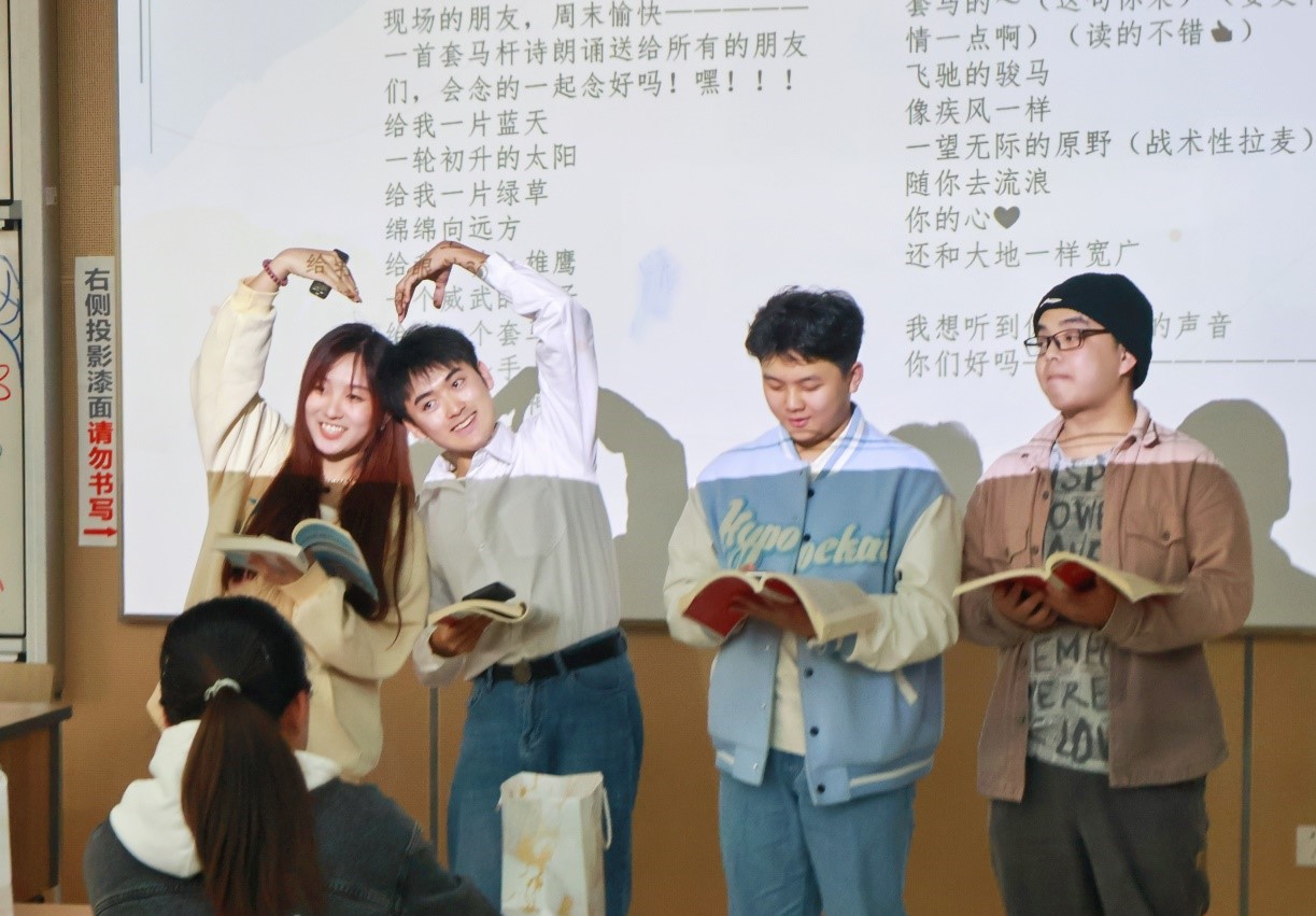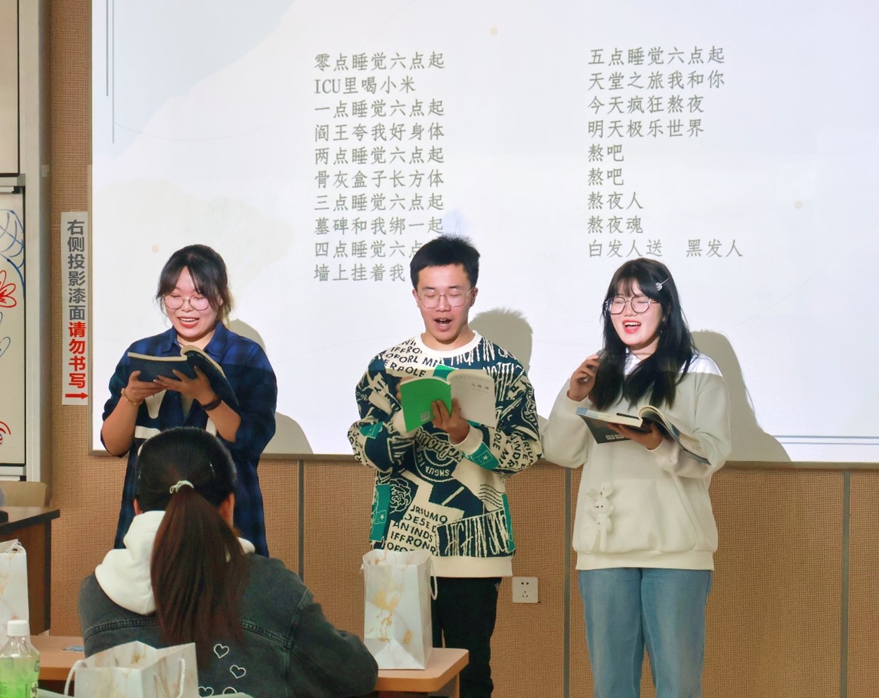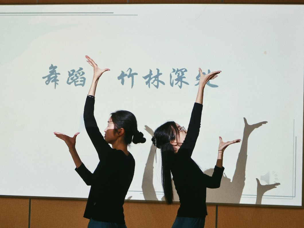 活动进入第一个环节——才艺表演。同学们现场表演了合唱、舞蹈串烧、趣味朗诵、古典舞等精彩节目。《稻香》+《成都》的合唱,让大家感受到青春的活力与相逢于成都的温情;《surfin》+《pop》+《make it right》+《new boy》舞蹈串烧,让大家在各式各样风格的舞蹈中感受到同学的蓬勃朝气与激情;《反向带货》、《套马杆》等4个趣味朗诵作品,引发现场欢笑不断;古典舞《竹林深处》,让在场的老师与同学沉醉其中;最后,《灯花》合唱,现场的老师同学都陶醉于其悠扬歌声之中。