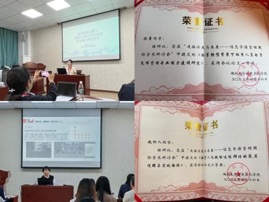 档案学研究生陈香、赵柯人在研究生分论坛分别做了学术报告,其提交的论文《数字转型背景下档案人员电子文件管理专业能力建设研究》《数字人文赋能边缘群体的底层逻辑与实现路径》分获会议论文一等奖、二等奖。