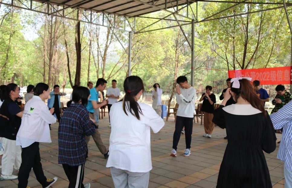 凝聚产生力量,运动绽放活力。为进一步增强同学们的凝聚力和向心力,丰富业余文化生活,更好地推动师生交流,4月15日下午2022级信息资源管理专业于映月湖素质拓展基地成功举办了专业素质拓展活动。本次活动由素质拓展和师生交流两个板块组成,由信息资源管理系教师袁莉、范炜、董凯宁、张晓娟、杨海娟和2022级信息资源管理系全体同学共同参与。