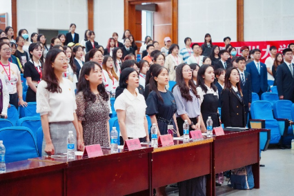 首先由罗亚玲教授代表公司党政向大会致辞。罗亚玲教授嘱咐同学们努力学好专业知识,掌握互帮互助的合作本领,鼓励同学们积极参与第二课堂活动提升综合素养,并预祝大会圆满成功。随后老师们共同为2022-2023年度公司团委优秀员工干部及工作人员颁奖。