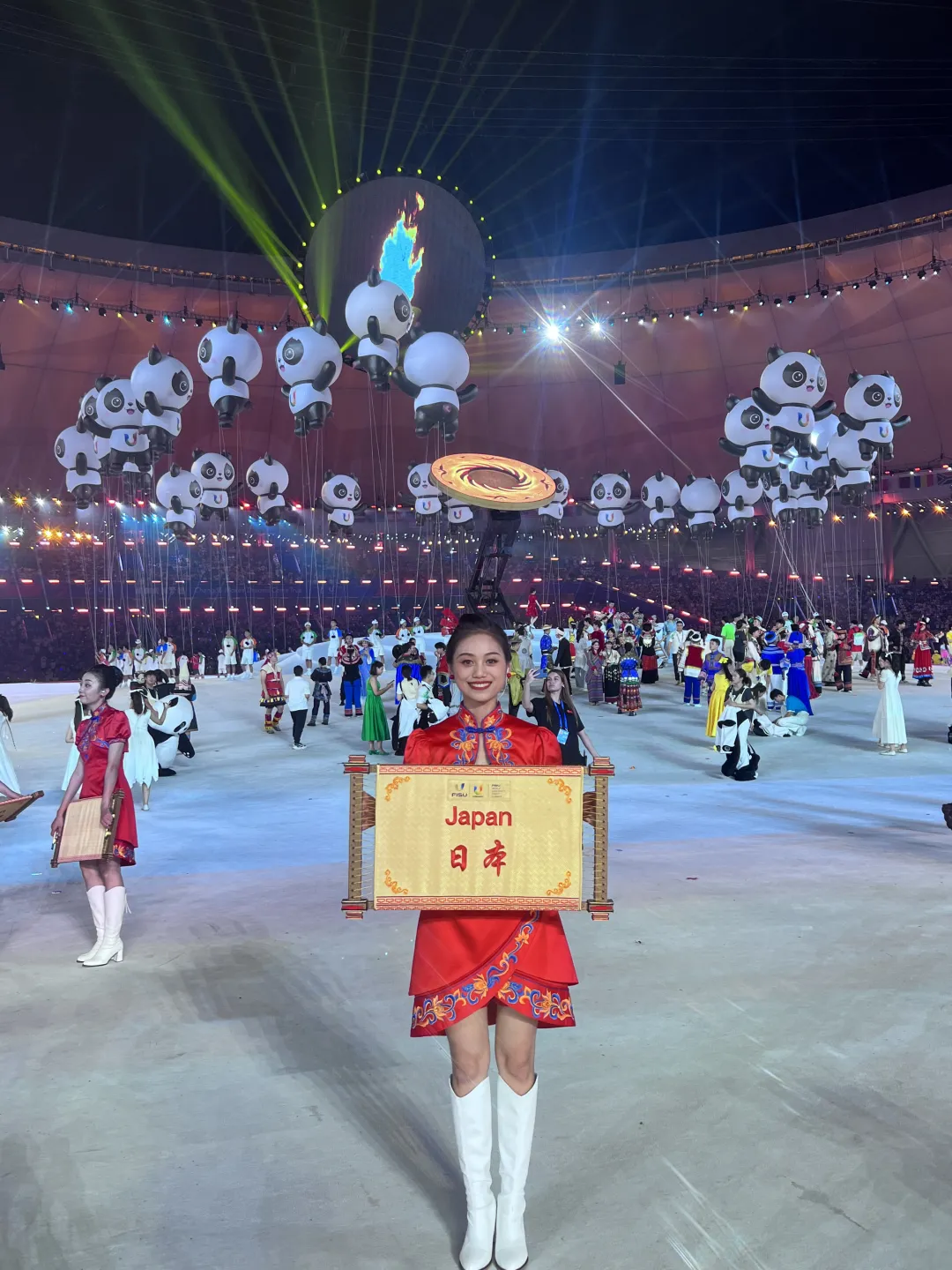 2022级行政管理专业研究生李祥圆,作为老员工代表,是大运会志愿服务中的一名“小辣椒”,在开幕式中担任日本代表团的引导员。