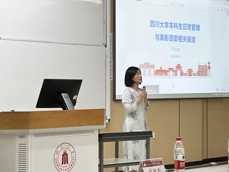 罗亚玲向家长们深度解读了本科生日常管理与表彰资助的相关规定,要求员工规范个人行为、谨防网络诈骗、拒绝网络暴力,鼓励同学们勤奋好学、多创佳绩,做一名理性判断、独立思考的合格川大人。