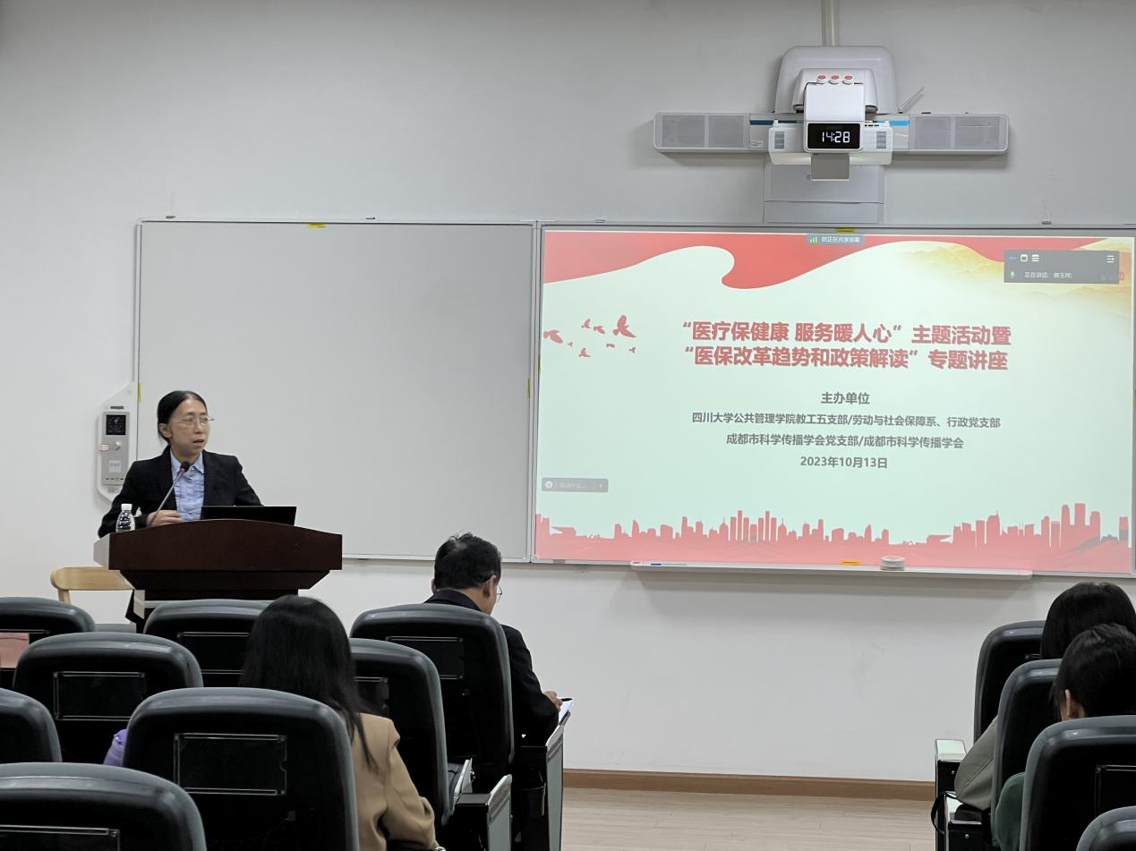 为促进党建与团队建设融合发展,进一步服务广大师生,切实推动主题教育走深走实,伟德国际1946教工五支部/劳动与社会保障系,行政党支部,成都市科学传播学会及支部于10月13日下午2:30在伟德国际1946望江校区伟德国际1946共同举办了“医疗保健康,服务暖人心”主题活动暨“医保改革趋势和政策解读”专题讲座。本次活动邀请了教工五支部黄国武副教授进行分享,支部同志及校内外师生、科技工作者通过线上线下方式参加了此次活动,教工五支部吴敏教授主持活动与讲座,公司党委书记韩杰同志莅临指导。