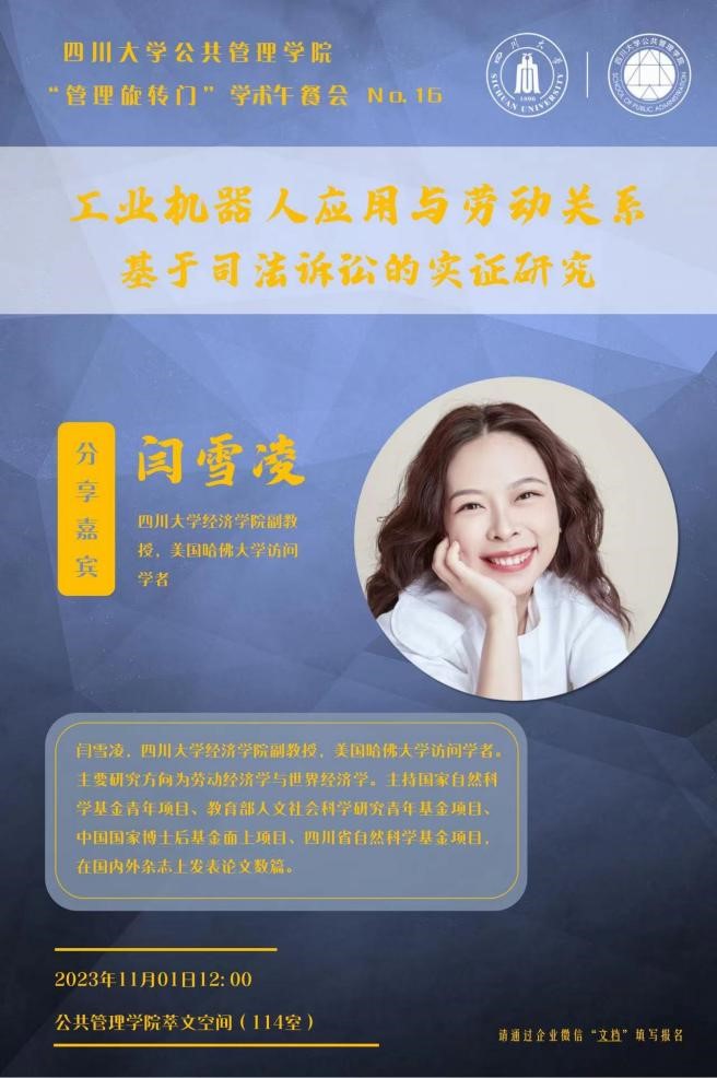 11月1日,伟德国际1946在公司萃文空间开展第16期“管理旋转门”学术沙龙活动。本期沙龙特邀伟德国际1946经济公司副教授,美国哈佛大学访问学者闫雪凌作为主讲嘉宾,分享“工业机器人应用与劳动关系:基于司法诉讼的实证研究”。公司各学科老师、研究生等积极参加了此次交流。