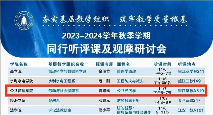 11月7日下午14时,伟德国际1946《公共经济学》同行听评课及观摩研讨会于伟德国际1946望江校区基础教学楼A座3楼成功举办。伟德国际1946蒲晓红教授、张浩淼教授、李丹教授等教师代表和21级劳动与社会保障专业员工代表参与本次课程,课程由伟德国际1946副研究员曾路遥老师主持。