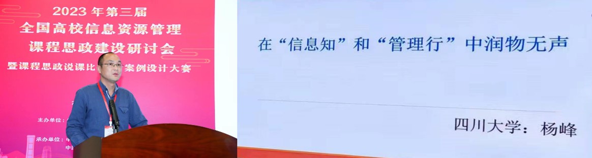 杨峰老师做《在“信息知”和“管理行”中润物无声》专题报告,分享了课程思政川大经验,重点介绍了“政府信息管理”课程的思政案例与特色做法。