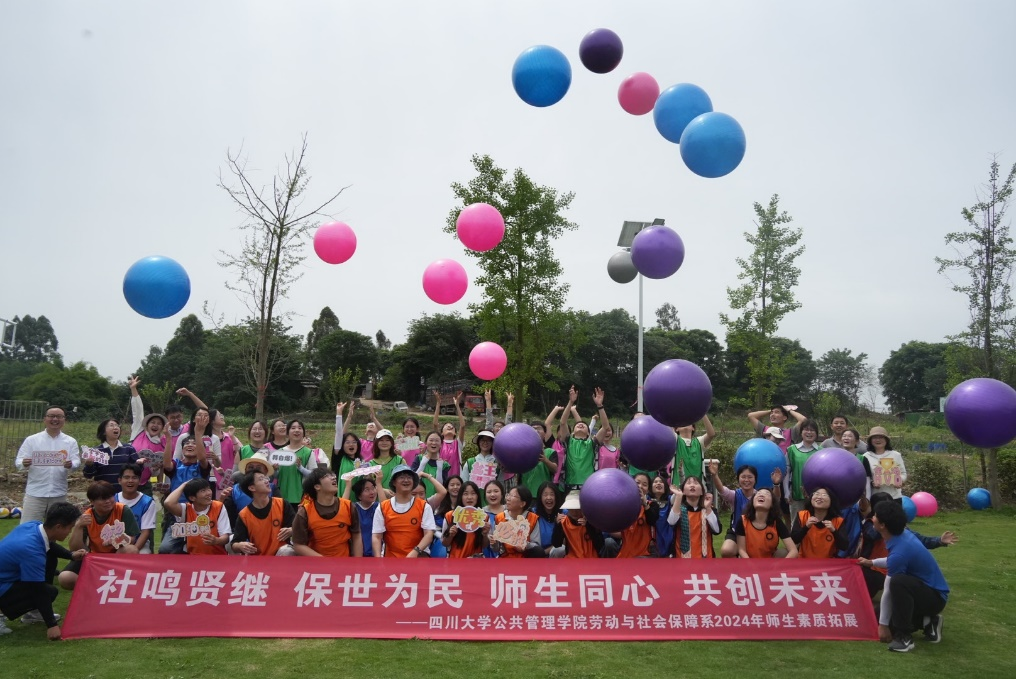 5月12日,劳动与社会保障专业本科师生在成都市三圣花乡成功举办了素质拓展活动。系主任张浩淼教授、吴敏教授、李丹教授、张伟科副研究员、杨帆副教授和大二、大三、大四的员工一同参与。在主持人和教练的指导下,师生以团队形式完成了“鼓动人心”“挑战NO.1”“龙的传人”等素质拓展活动,充分锻炼了同学们的团队协作能力,增强了团队信任。活动不仅丰富了师生课余生活,而且增进了师生感情,加深了同学们的专业认同感与归属感。
