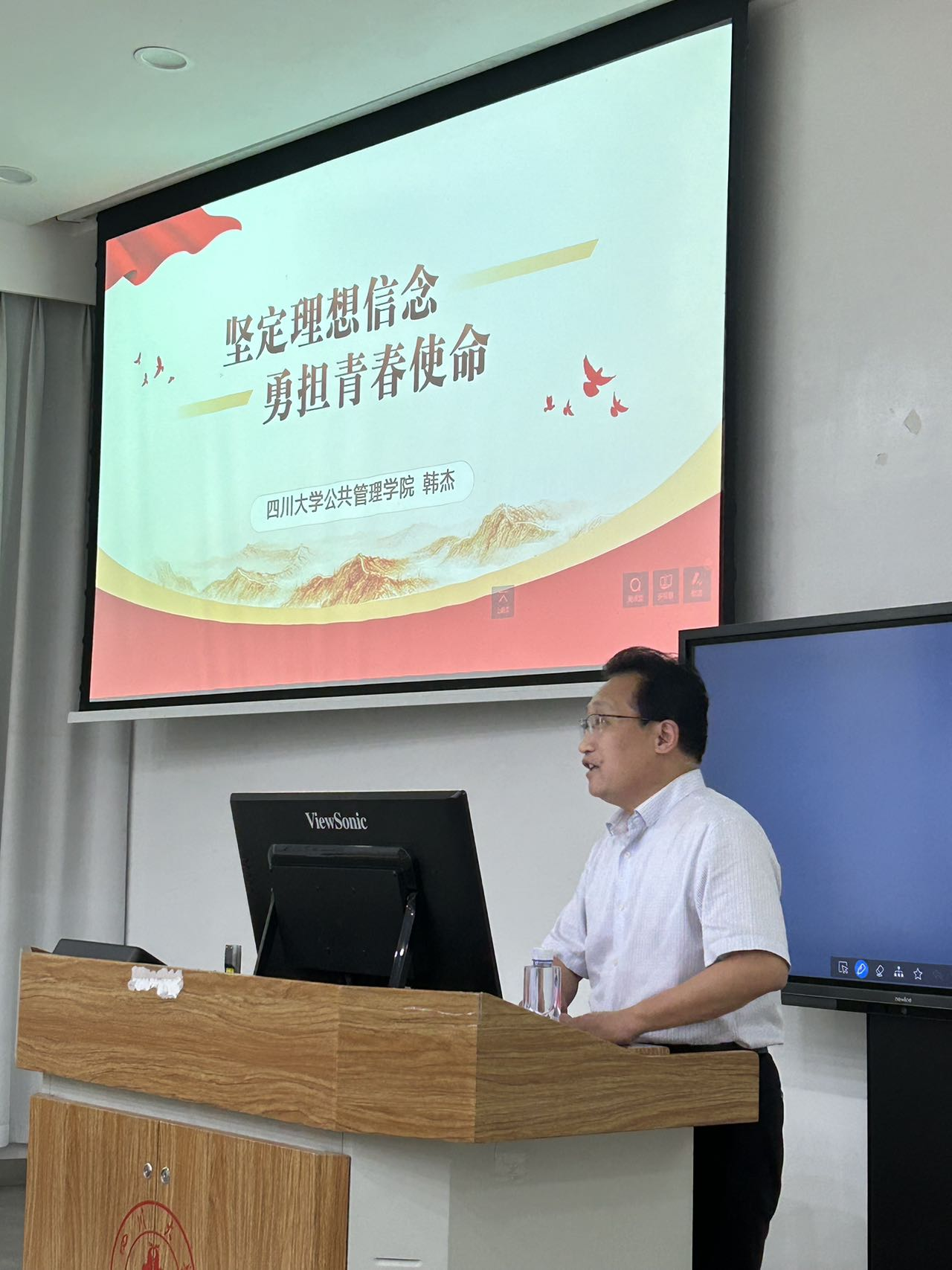 最后,韩杰书记以“坚定理想信念,勇担青春使命”为题为学员带来第二讲课程。韩书记向同学们生动讲述了为什么中国共产党是时代的选择,以及百年来中国共产党发展壮大的伟大历程,并鼓励同学们积极向党组织靠拢,树立正确的入党动机,争做优秀共产党员。