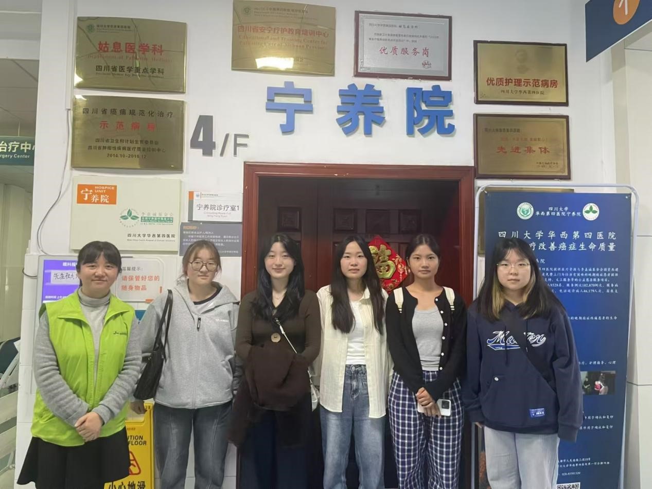 10月24日,公司《死亡与关怀的社会学思考》课程的8位同学在贾艳皊老师的带领下,走进华西第四医院李嘉诚宁养院,开展了一次别开生面的课外实践活动。此次活动旨在让同学们深入了解安宁疗护这一特殊而重要的医疗服务,更直观地体会生死教育。