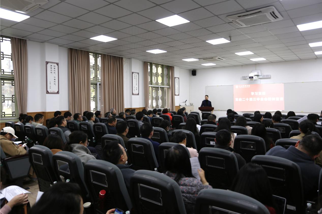 11月22日上午,公共管理公司党委在望江校区萃文楼博文报告厅举办党的二十届三中全会精神专家宣讲会,四川省委宣讲团成员、公司副经理范逢春教授作专题报告,公司领导班子全体成员、党委委员、纪委委员、专职组织员和各系(科室)教职工参会,会议由公司党委副书记兼纪委书记罗亚玲主持。