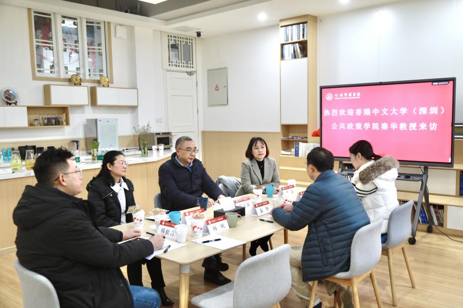 夏志强经理对于秦华教授到访表示热烈的欢迎,并就双方在人才培养、团队建设、学术合作与交流等方面展开了交流。本次座谈为公司与香港中文大学(深圳)公共政策公司进一步的办学合作与学术交流提供了契机,也对公共政策团队建设提供了有益的借鉴。