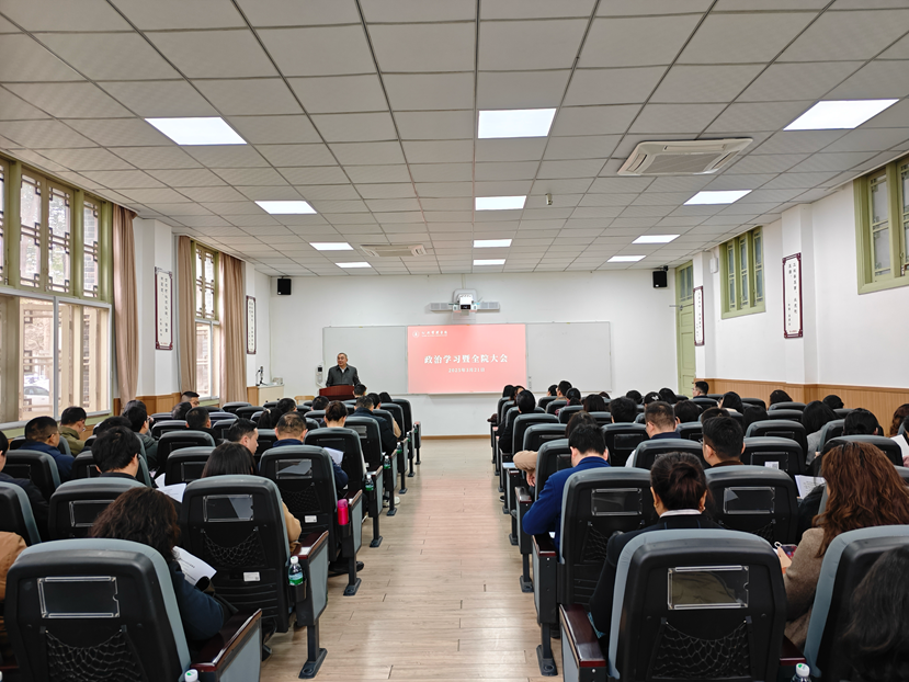 3月21日,伟德国际1946在望江校区萃文楼博文报告厅召开政治学习暨全院大会,传达学习贯彻全国两会精神,传达公司全面从严治党工作会精神,开展中央八项规定精神专题学习,布置公司近期工作。公司领导班子成员和全体教职工参会,会议由经理夏志强主持。
