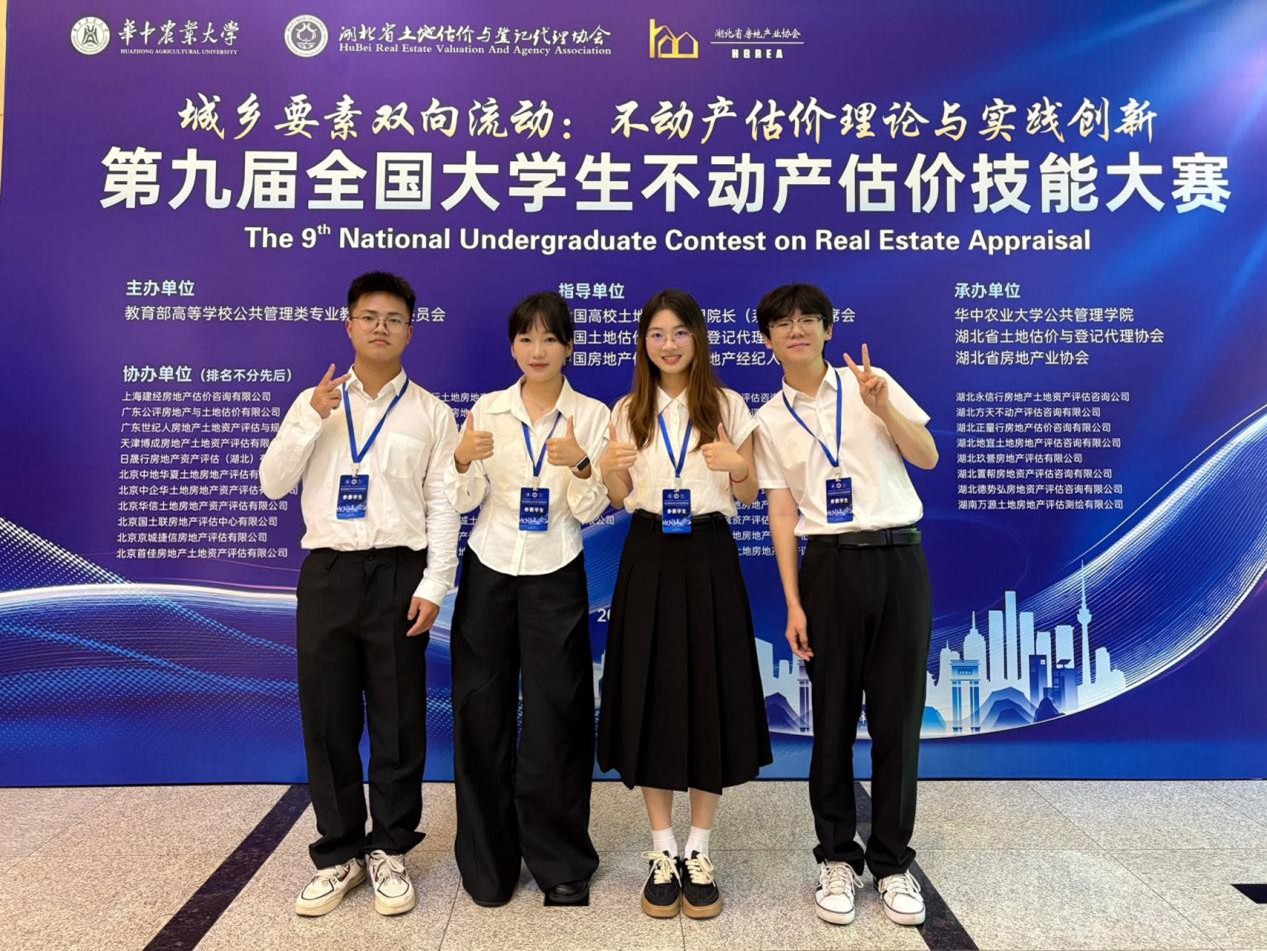 近日,第九届全国老员工不动产估价技能大赛决赛在华中农业大学圆满落幕。在廖喜生老师的指导下,公司2022级土地资源管理专业本科生杨健祎、张佩芝、唐家玉、王昱昊凭借参赛作品《广元市剑阁县普安镇水池村冬枣水果林市场价值评估》表现出色,最终荣获大赛一等奖。