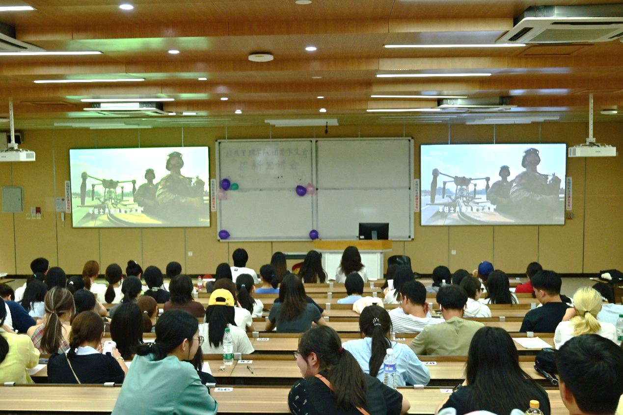 在江安校区综合楼,公司200余名本科生集体观看纪念中国人民抗日战争暨世界反法西斯战争胜利80周年阅兵视频。随着阅兵分列式展开,徒步方队迈着“踢腿生风、落地砸坑”的整齐步伐驶过镜头,装备方队中兼具威慑力与科技感的大国重器依次亮相,空中梯队以精准队形掠过天际——每一个场景都让同学们屏息凝视,现场不时爆发热烈掌声。