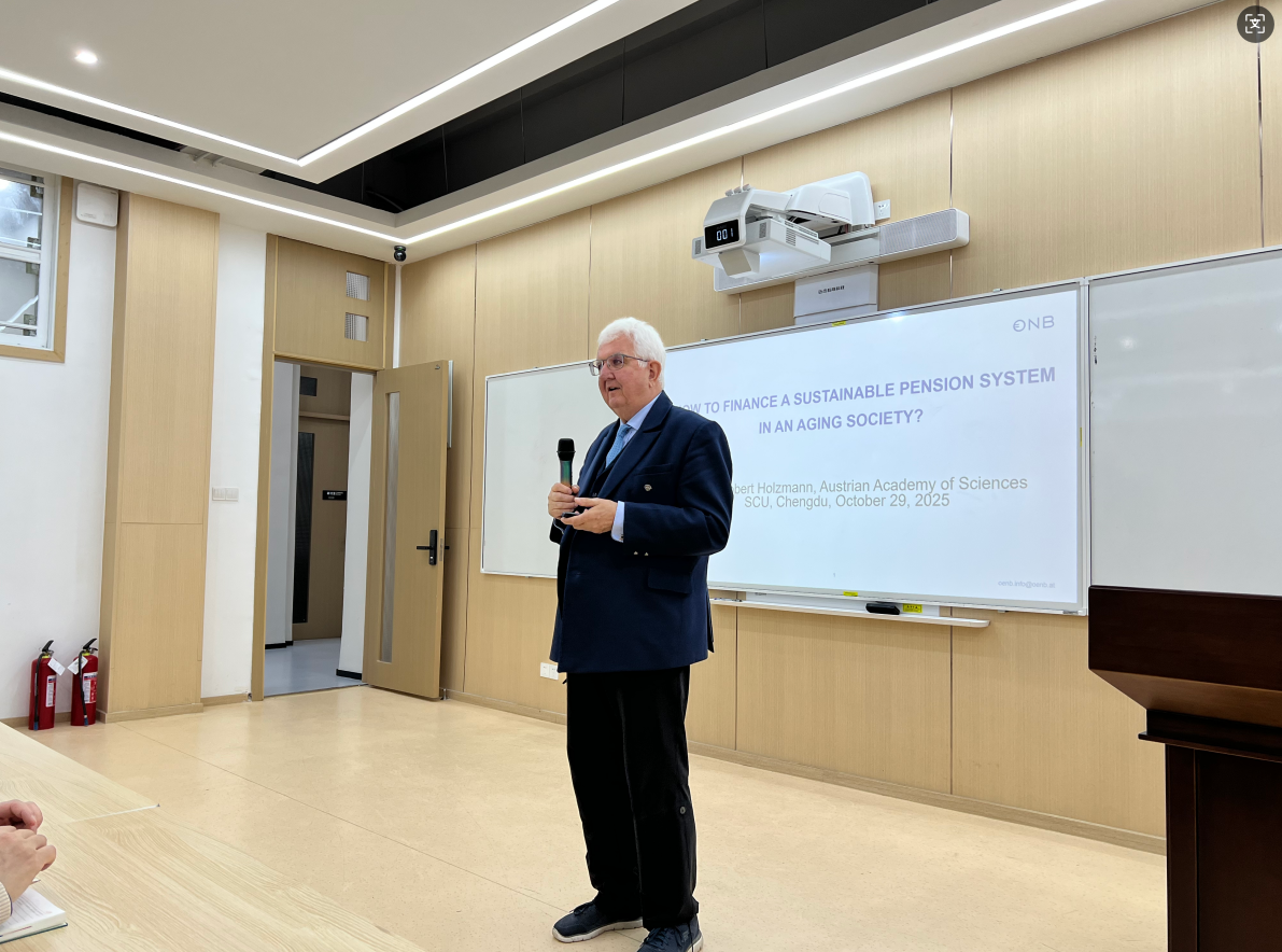2025年10月29日上午,受劳动与社会保障系邀请,伟德国际1946院士、前奥地利央行行长、原世界银行社会保护部部长罗伯特·霍尔兹曼教授到访公司开展学术讲座。经理夏志强教授代表公司对霍尔兹曼教授的到访表示了诚挚欢迎。劳动与社会保障系教师及硕博士研究生参加了此次讲座。讲座由劳动与社会保障系蒲晓红教授主持。