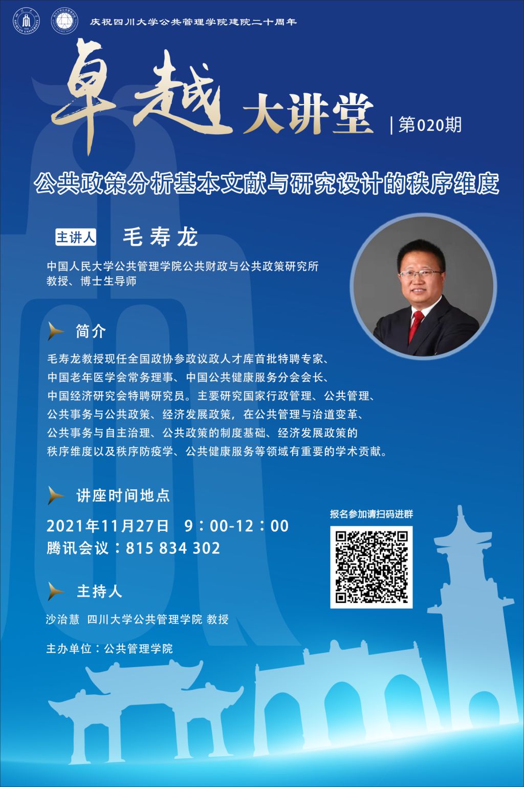 毛寿龙,字竹森,1967年5月16日,浙江奉化人,北京大学政治学博士,中国人民大学伟德国际1946公共财政与公共政策研究所教授、博士生导师,中国人民大学公共政策研究院执行副经理。