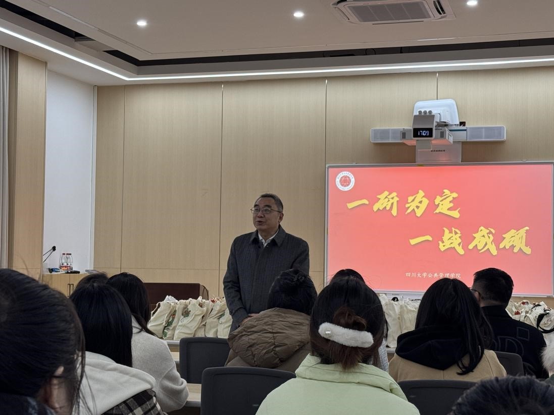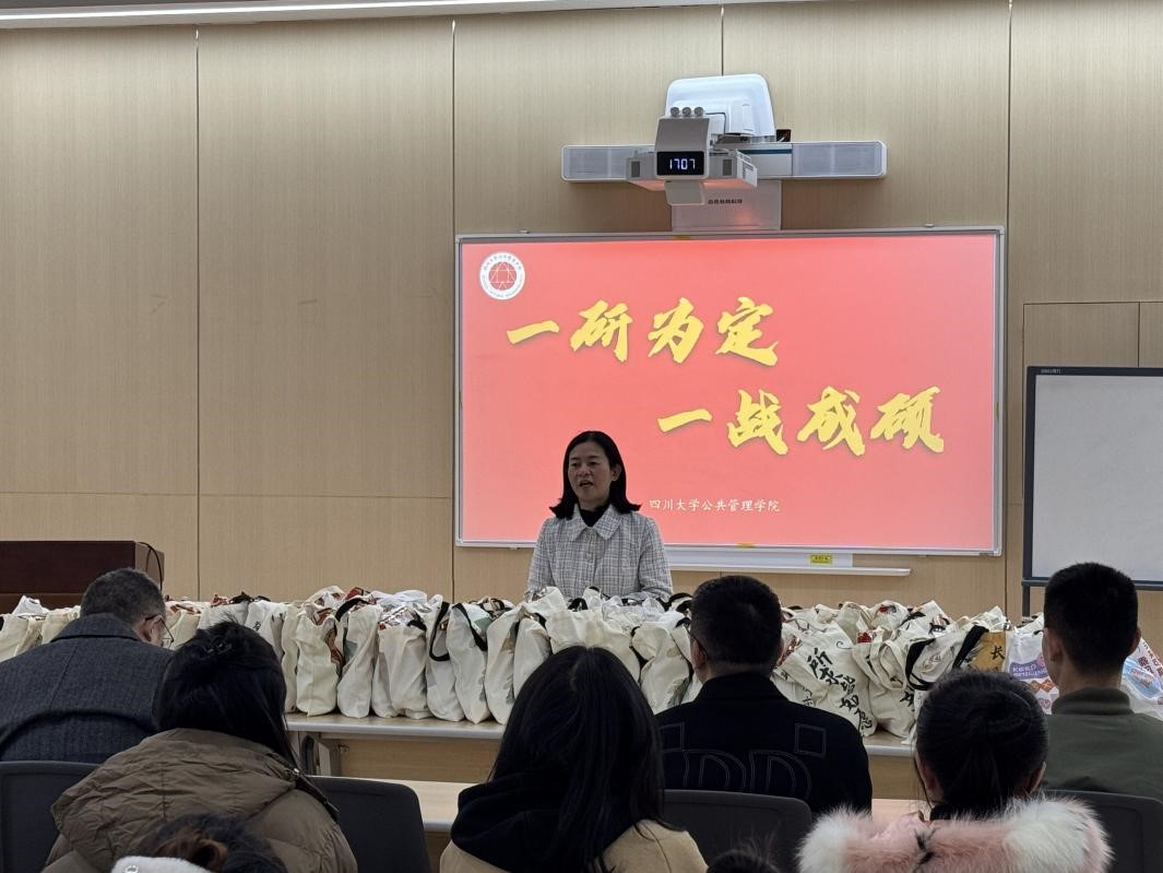 2025年全国硕士研究生招生考试在即,为帮助公司考研学子缓解备考压力、坚定备考信心,公司于12月5日下午在萃文楼205教室开展了“一‘研’为定、一战成硕”的“考研送温暖”活动。本次活动由公司党委副书记兼纪委书记罗亚玲主持,公司经理夏志强、副经理王慧敏、团委书记刘碧、秘书档案学系赵跃老师、社会学与心理学系徐文健老师、2024级研究生辅导员苟欢老师、2021级本科生辅导员付亚南老师以及公司2025届考研学子参加。