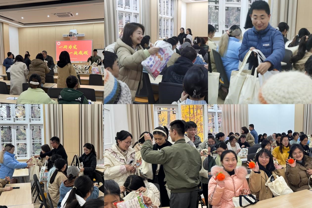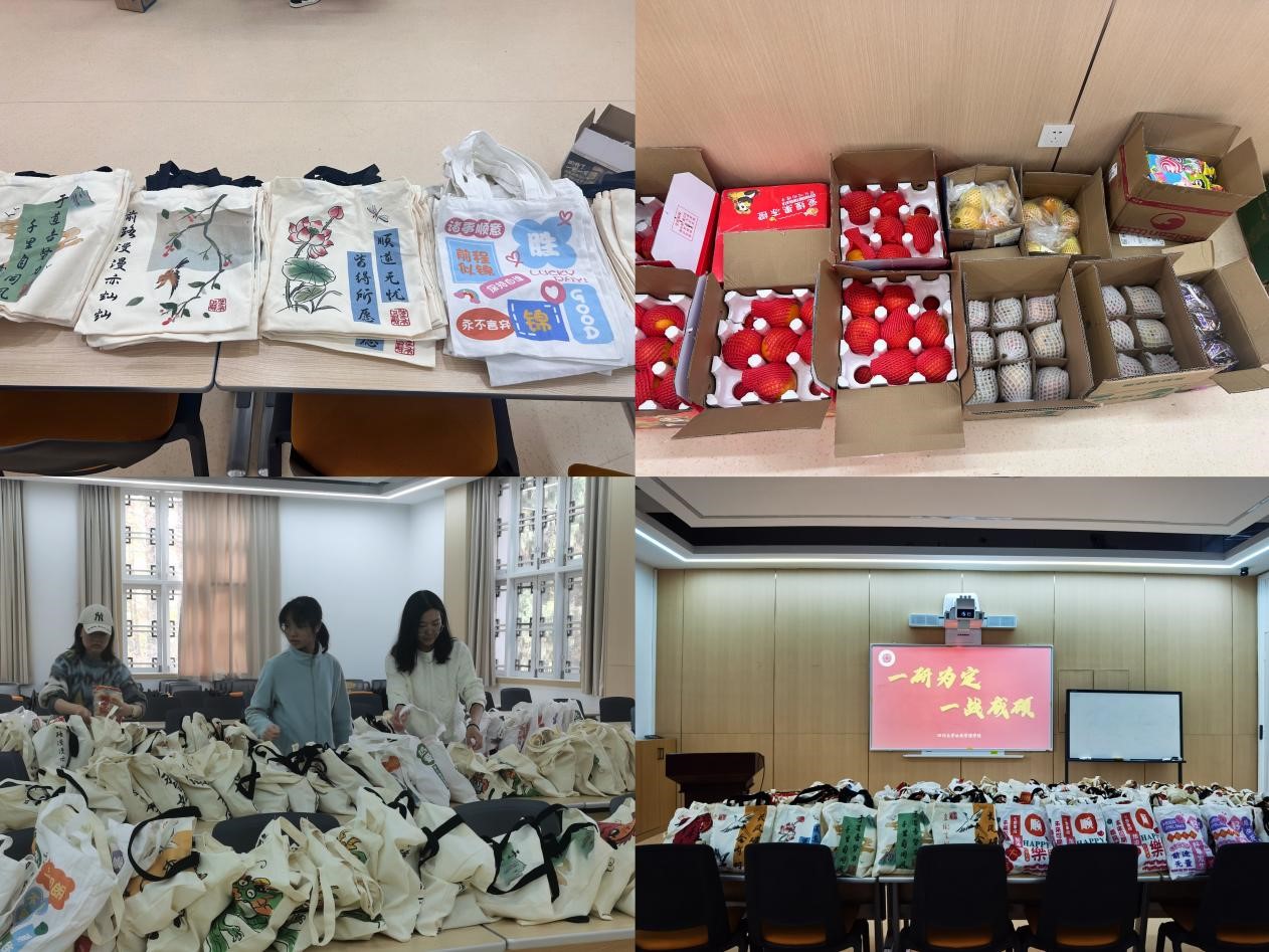 活动开始前,付亚南老师带领年级员工干部、党员一起为考研学子精心准备了暖心“加油包”,含有苹果——“苹”安顺利,橙子——心想事“橙”,柿子——事“柿”顺意,面包——“包”你上岸,蛋糕——“糕”枕无忧,士力架——“士”气昂扬,棒棒糖——“棒”上有名,旺旺雪饼——考试旺旺,祝福挂件——好事发生。共十件小礼物,代表对考研学子十全十美的祝福!