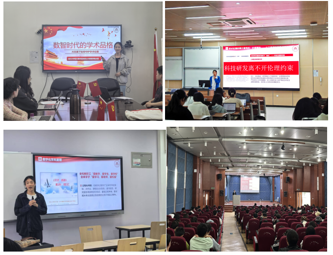 宣讲团成员走进党支部、团支部以及年级大会,为公司研究生和本科生进行具体案例剖析,深入探究了数智时代面临的学术伦理危机、AI抄袭、治理困境等问题,着重阐述了要重塑学术品格、坚守学术道德底线、合理使用人工智能工具。宣讲团成员还结合《伟德国际1946本科公司产品人工智能工具应用规范(试行)》介绍了“全过程、全覆盖、全方位、零容忍”学风建设体系,从禁止直接生成核心成果,到限制辅助撰写论文的使用场景,再到鼓励信息检索与知识查询等方面,帮助同学们明确了科技使用的边界,引导大家正确利用智能工具促进学术发展。