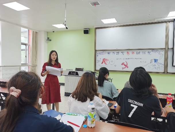 “一艘小小的红船,承载着人民的重托、民族希望。”一百年前共产党人抛头颅洒热血换来了我们如今幸福的生活,如今我们新一代青年们更应不忘初心,砥砺前行,始终跟随着党的步伐,以一份感恩的心和奋斗的行面对当下的学习和生活。活动接近尾声,苟欢老师对大家的作品展示赞不绝口,对同学们的悉心准备表示赞赏,同时鼓励同学们继续以饱满的热情和不懈的创新能力为自己的成长和发展不断赋能。通过本次活动,同学们的真心和用心不仅表达了对党百年发展历程炙热的祝福,更表现出了当代大学新生那份赤子的家国情怀,透过这些作品和展示,似乎看到了祖国发展更加光辉的未来。