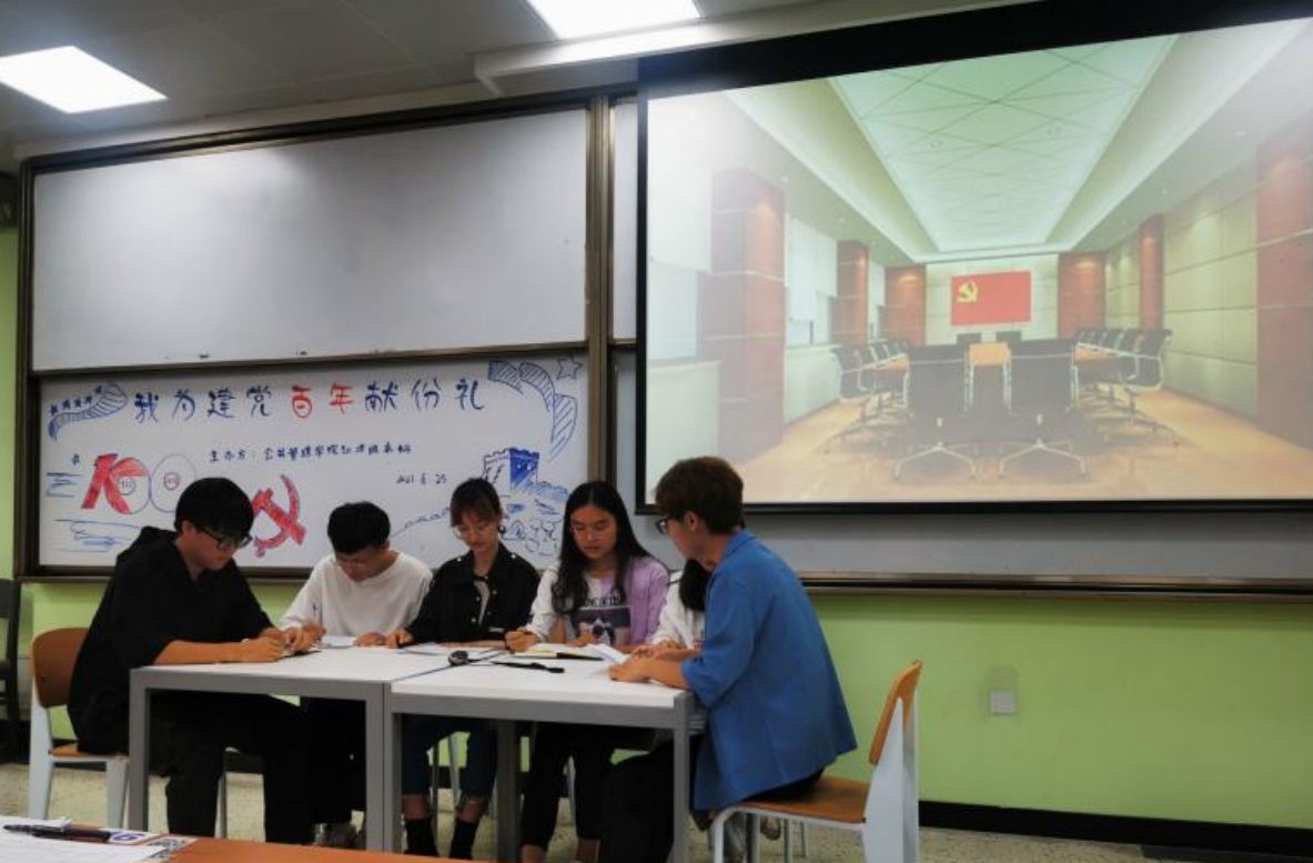 在中国共产党成立一百周年之际,2020级本科全体同学于6月25日,在江安校区一教B101举办了以“我为建党百年献份礼”为主题的建党百年庆祝活动。本次活动在2020级本科专职辅导员苟欢老师的组织策划下圆满完成。同学们带着饱满的创作热情表达着自己对共产党的崇高敬意和礼赞。