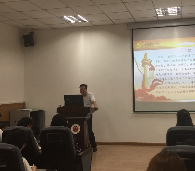为深入贯彻落实习近平新时代中国特色社会主义思想和党的十九大精神,7月17日下午,伟德国际1946“学习贯彻党的十九大精神宣讲团”成员、伟德国际1946经理史云贵教授在公司105报告厅为公司员工党员作党的十九大精神宣讲报告,报告主题为《新时代 新使命 新思想 新策略 新作为——全面学习、贯彻、落实十九大精神》。报告会由员工辅导员、各年级员工党员代表参加。